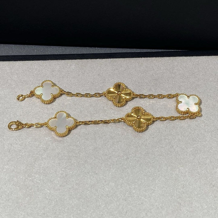 "White Mother-of-Pearl Five-Flower Bracelet - Attract Wealth, Prosperity Awaits!"