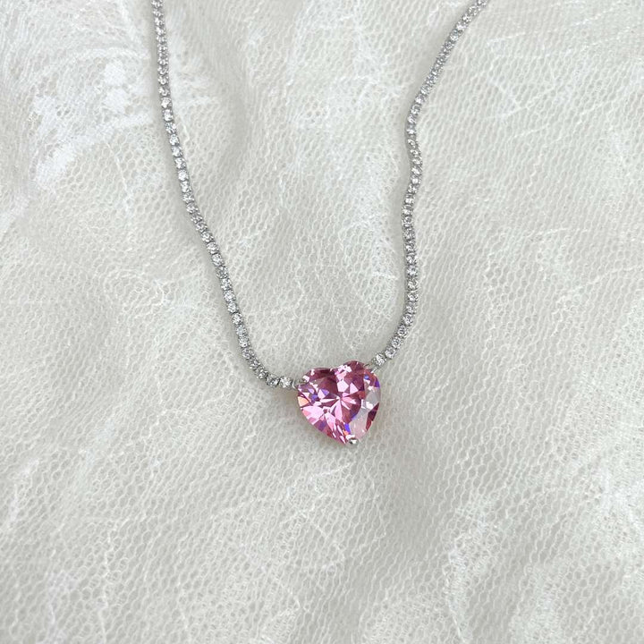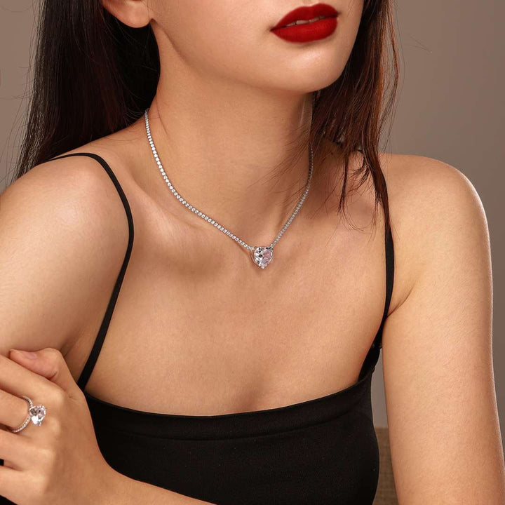 ˇTrend Jewelryˇ8.0 Carat Versatile Colorful Sweet Heart-Shaped Tennis Necklace