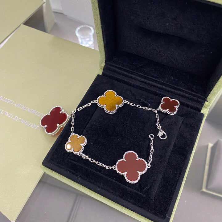 ˇTrend JewelryˇCLOVER 5 MOTIFS CARNELIAN TIGER EYE BRACELET