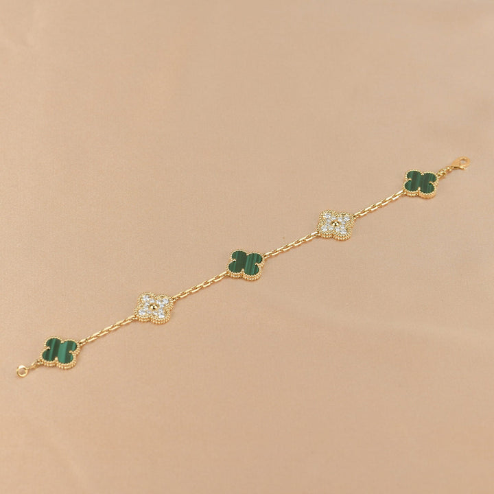 ˇTrend JewelryˇCLOVER 5 MOTIF MALACHITE DIAMOND BRACELET