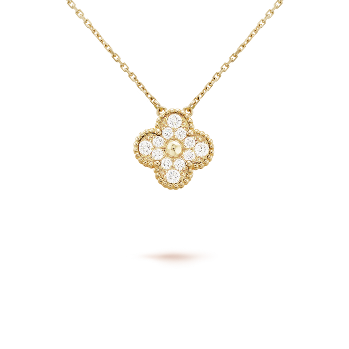 ˇTrend JewelryˇCLOVER 15MM DIAMOND SINGLE FLOWER NECKLACE