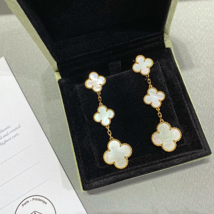 ˇTrend JewelryˇCLOVER MOP 3 MOTIFS GOLD EARRINGS