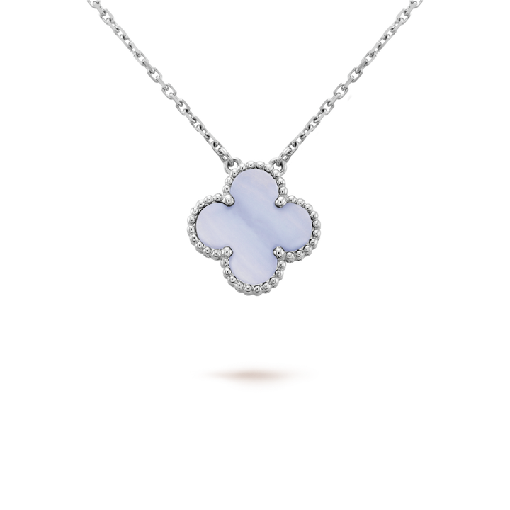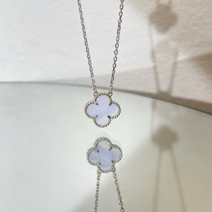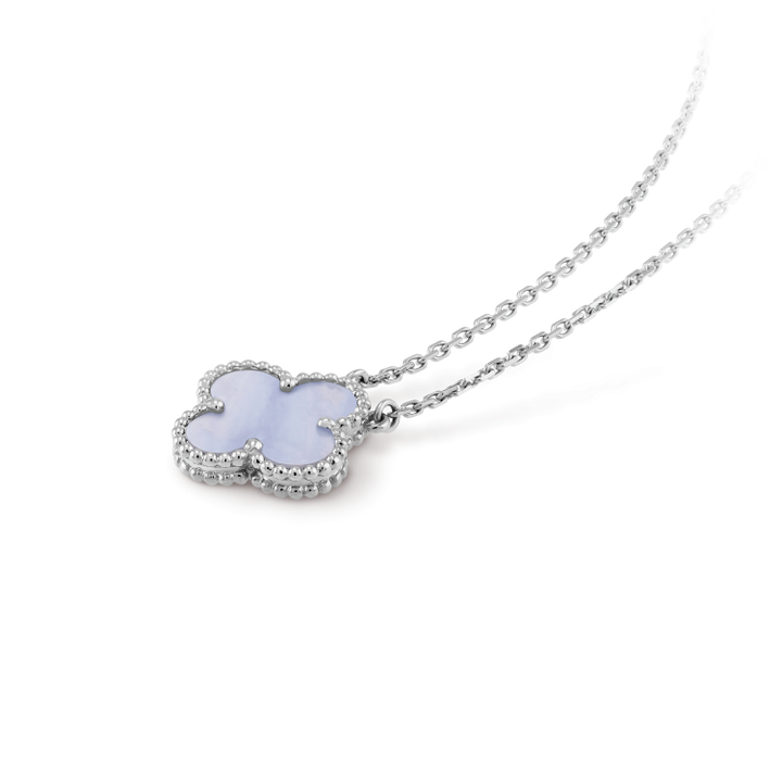 ˇTrend JewelryˇCLOVER 15MM BLUE CHALCEDONY NECKLACE SILVER